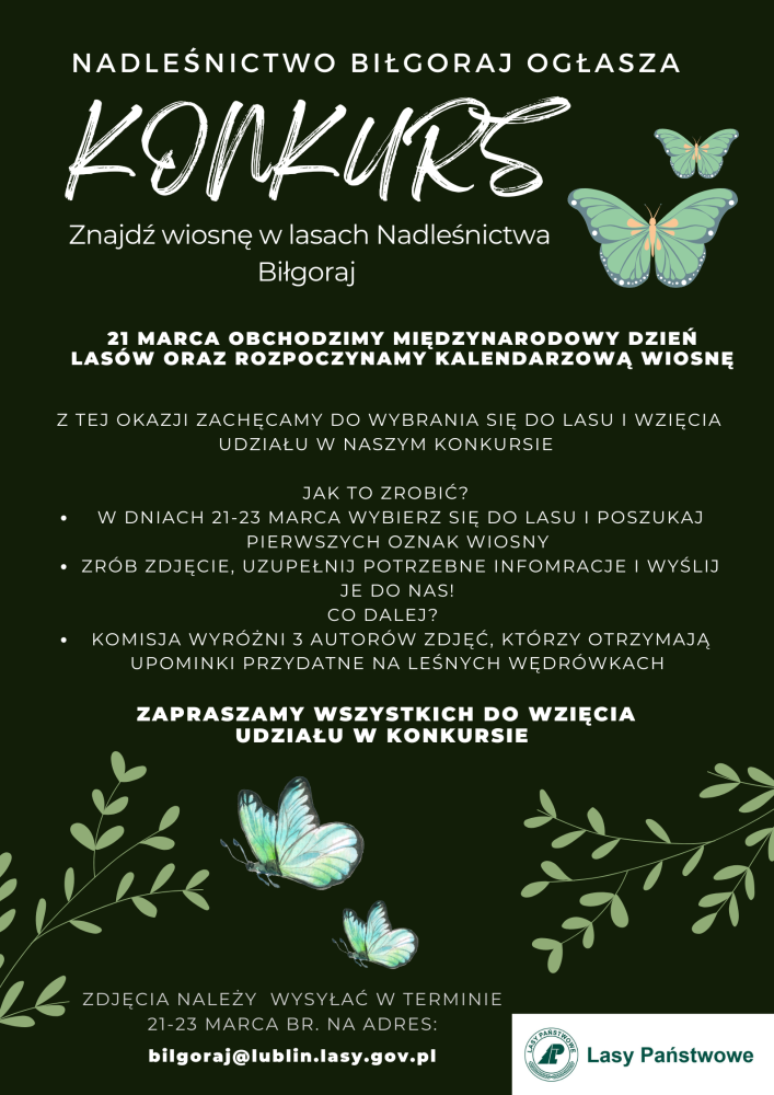 Zgłoszenia wysyłamy na adres: bilgoraj@lublin.lasy.gov.pl w terminie 21-23 marca 2025r.